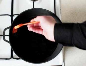 Прожарювати чавунну сковороду, каструлю, гусятницю або казан слід близько 20 хвилин, наповнивши її сіллю.
