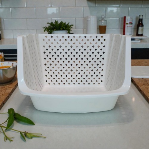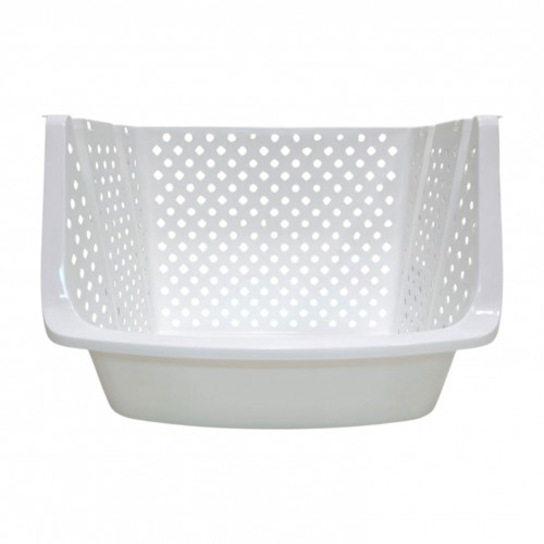 Перфоровані бокові та задня стінки забезпечують вентиляцію, тому органайзер ідеально підходить як контейнер для зберігання овочів. Продукти добре вентилюються, не накопичують вологу та не висипаються, як це часто буває з відкритими етажерками. Підвищений передній бортик утримує вміст усередині, але дозволяє легко та швидко діставати потрібні речі.