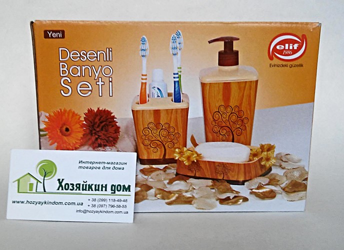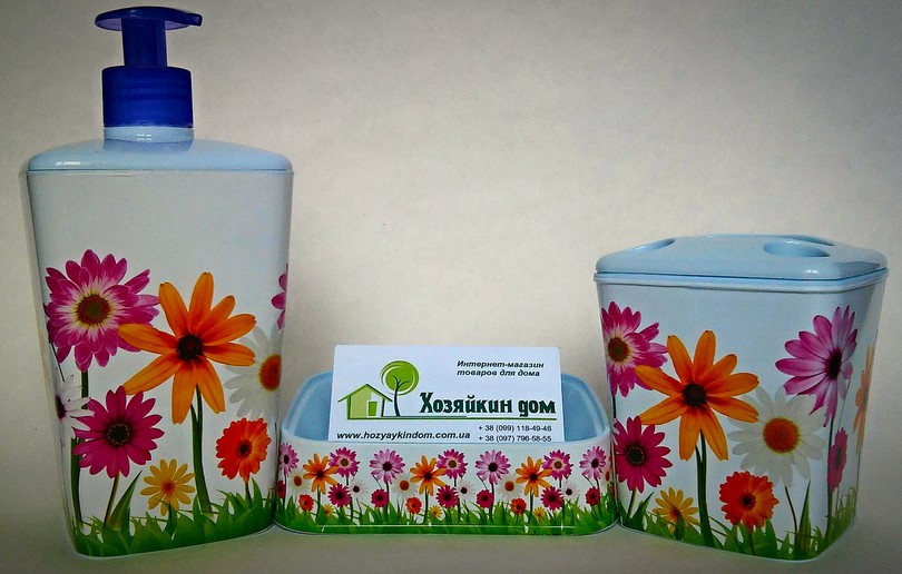 Набір аксессуарів для ванної Гербери від Elif Plastik виготовленний з якісного пластику, з нанесенним на нього оригінальним яскравим принтом. У наборі: підставка для зубних щіток та пасти, контейнеру з дозатором для рідкого засобу та мильниця .