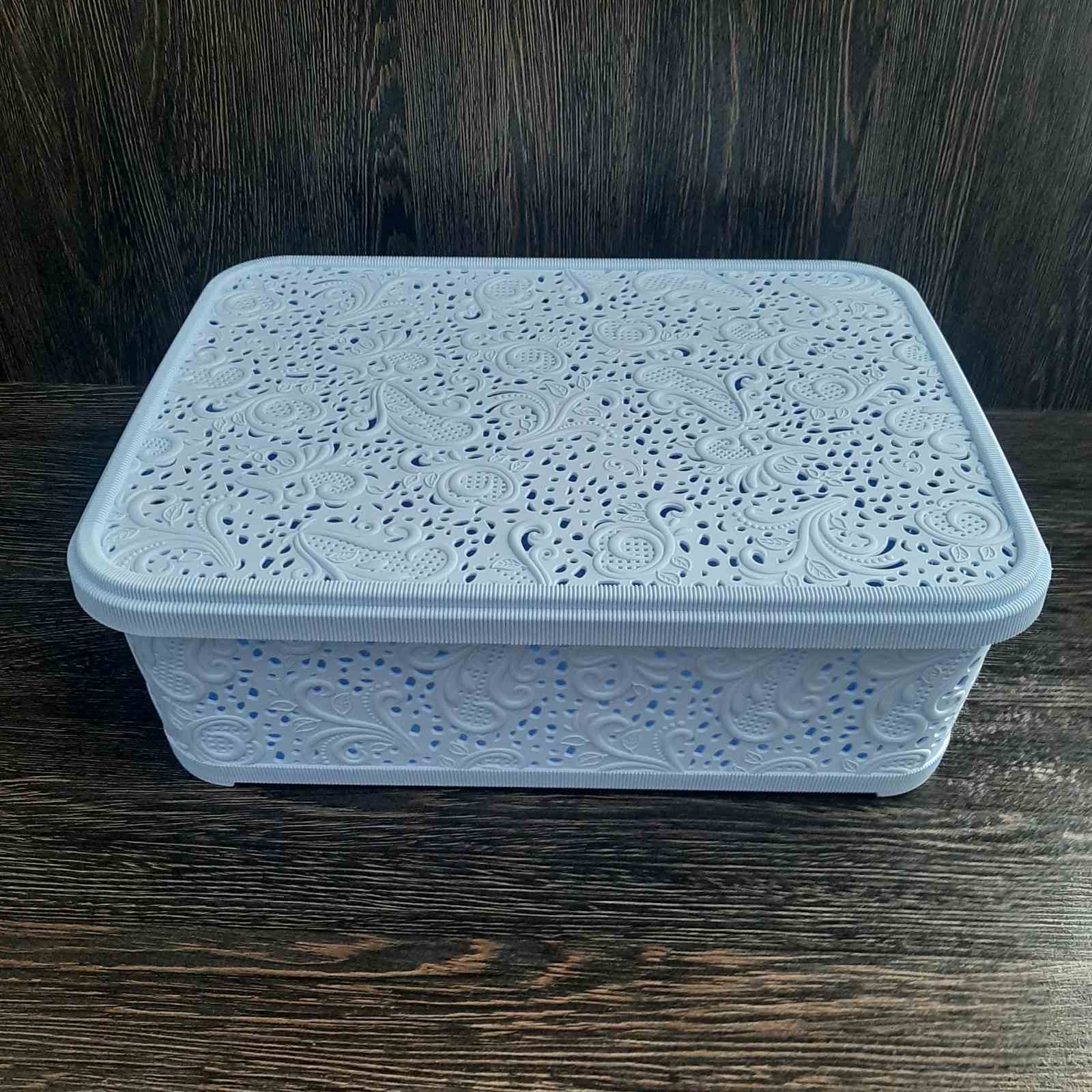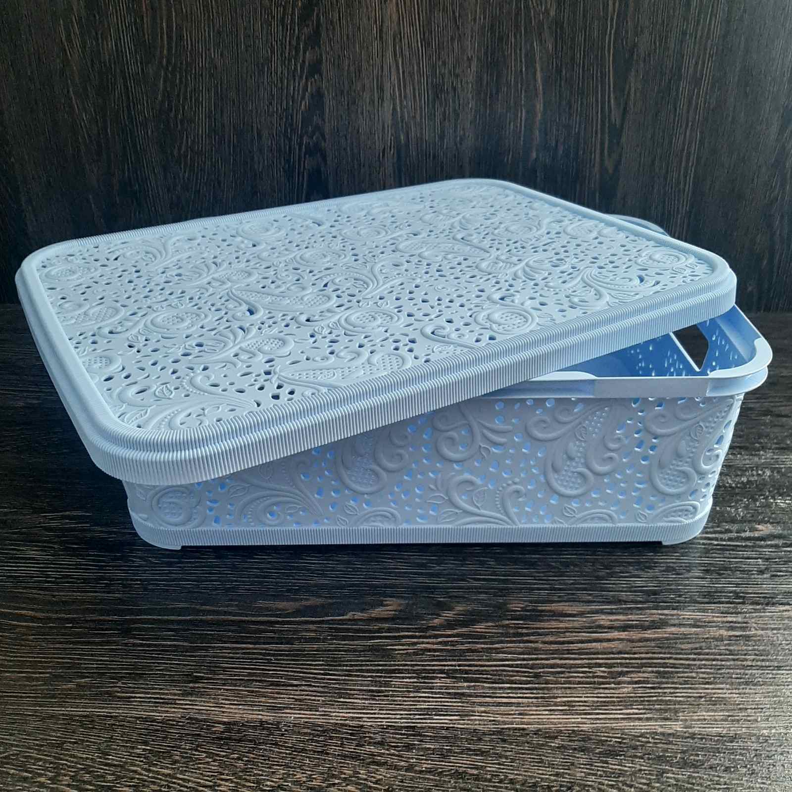 Кошик з кришкою для зберігання Ажур 12 л Блакитний