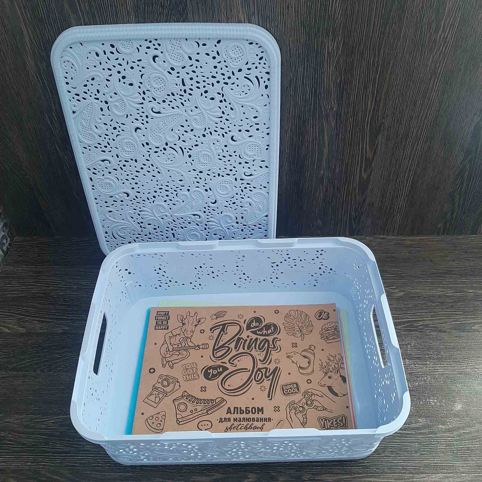 Кошик з кришкою для зберігання Ажур 12 л (Кольори: Білий, Бежевий, Коричневий, Блакитний, Металік )