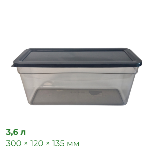 Доступні оптові умови, безготівковий розрахунок та оформлення документів за посиланням Контейнер Прайм прямокутний 3,6 л, 300×120×135 мм, прозоро-чорний, упаковка 12 шт, Полімербит ПБ-956