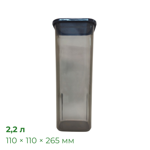 Доступні оптові умови, безготівковий розрахунок та оформлення документів за посиланням Контейнер Прайм квадратний 2,2 л, 110×110×265 мм, прозоро-чорний, упаковка 10 шт, Полімербит ПБ-833