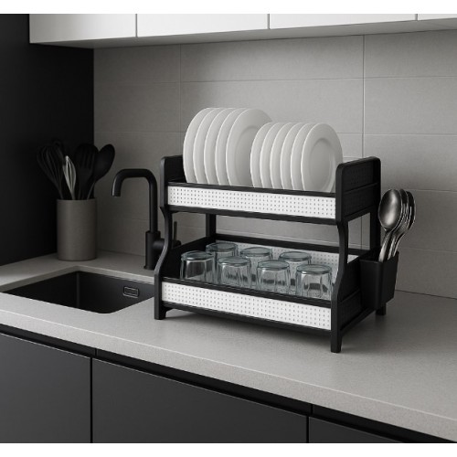 Дворівнева пластикова сушка для посуду R-plastic — це функціональний і стильний аксесуар для організації простору на кухні. Виготовлена з високоякісного пластику, вона ідеально підходить для щоденного використання вдома: не боїться вологи, не ржавіє, не потребує особливого догляду та служить довго.